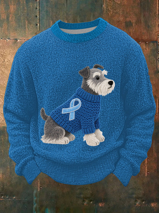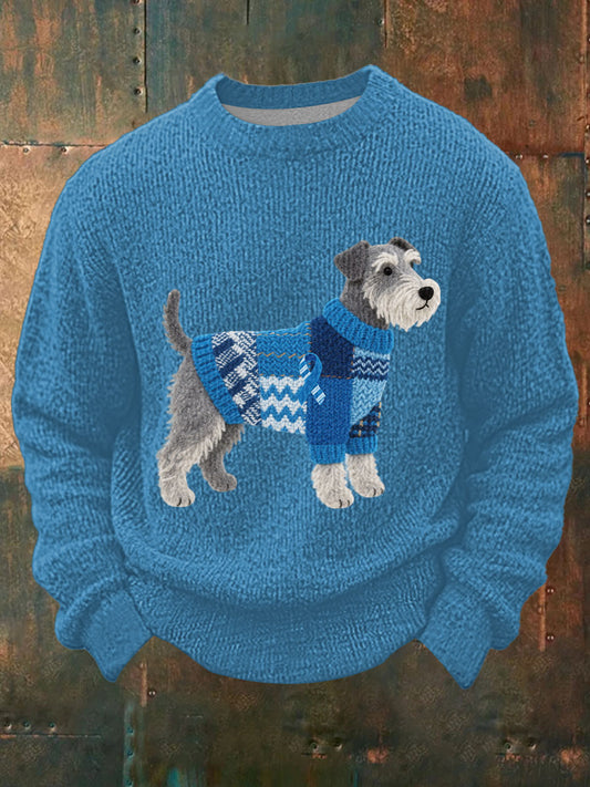 Men's Felt Art Schnauzer Dog Pattern Cozy Knit Top