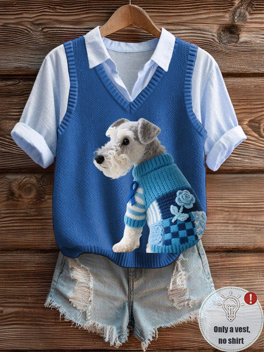 Men's Felt Art Schnauzer Dog Pattern Cozy Knit Top