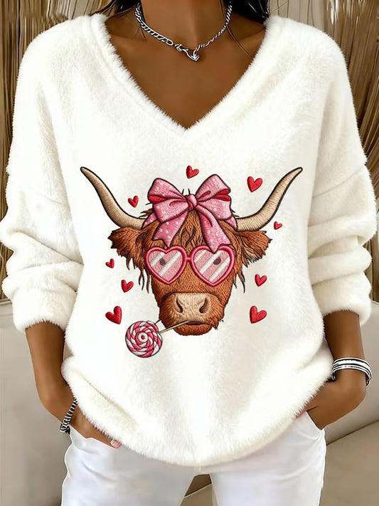 Women's Sweetheart Highland Cow Flannel V-Neck Top