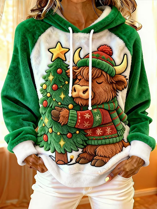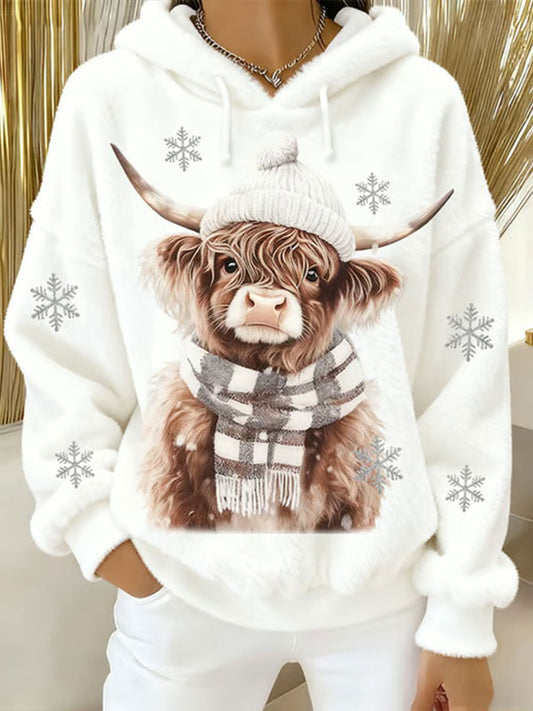 Women's Winter Cute Highland Cow Flannel Hoodie