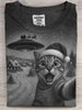 Christmas Cat UFO Sleigh Print Casual Short-Sleeve T-Shirt