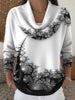 Ladies' Black and White Floral Sweater