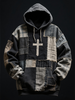Men's Patchwork of Faith Printed Oversized Drop-Shoulder Hoodie with Pockets