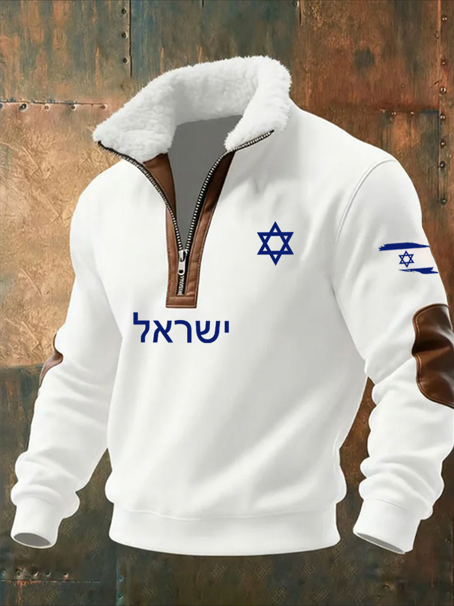 Men's Vintage Printed Casual Half-Zip Sweatshirt With Fleece Collar