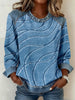 Women's Abstract Art Striped Print Denim Patchwork Sweatshirt