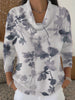 Women's Artistic Grey Leaf Print Cowl Neck Sweater