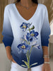 Women's Blue Gradient Delphinium Print V - Neck Top