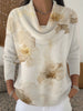 Women's Luxurious Gold Floral Print Cowl Neck Sweater
